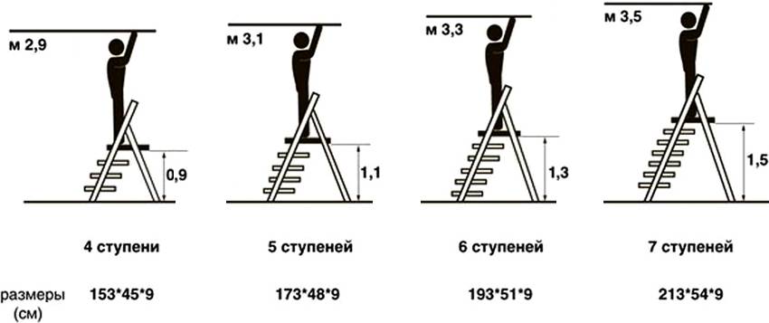 Размер стремянки выбирается в зависимости от ее предназначения