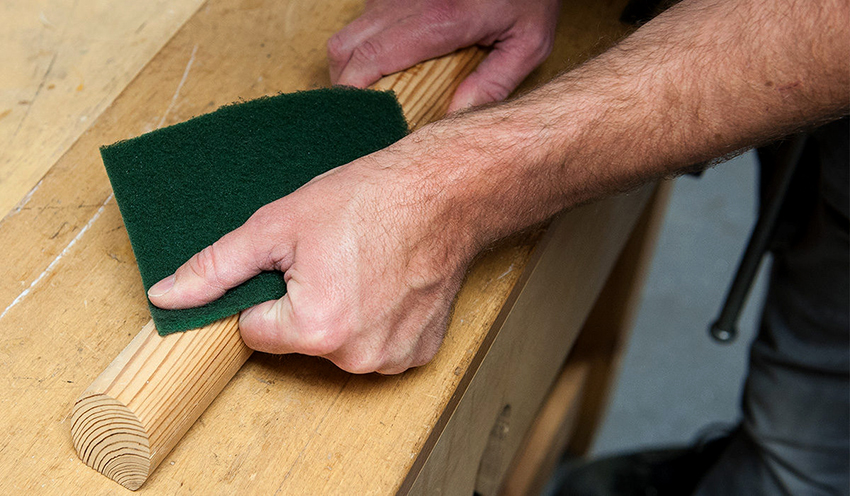 - У всех наружных ребер убирают фаску при помощи ручного струга или аналогичного инструмента. Все элементы ошкуривают и шлифуют.