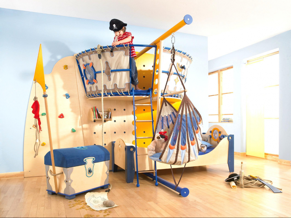 | Пиратский корабль | Предназначен для одного ребёнка. Игровая зона расположена на втором ярусе. Если понадобится, её можно будет переделать под дополнительное спальное место | ![]() |
