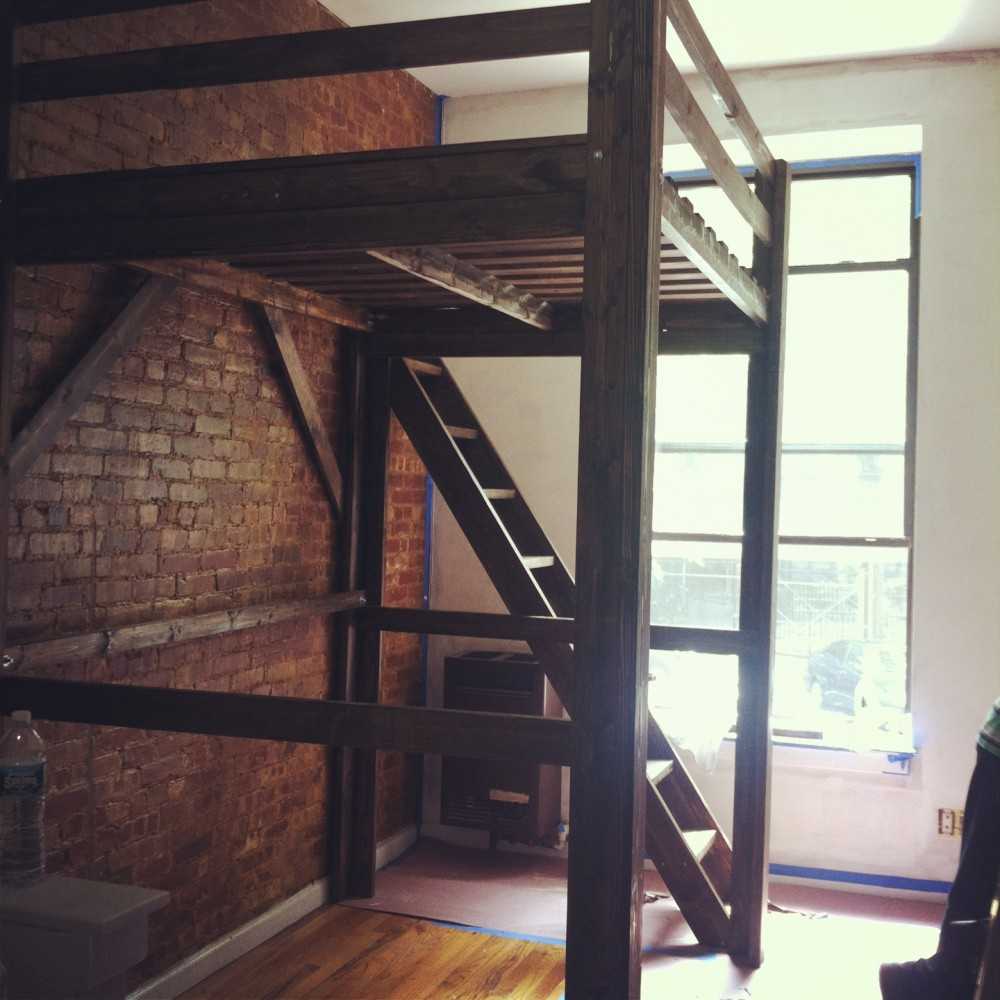 В нашем примере мы показали изготовление кровати-чердака без рабочей зоны. При этом совершенно необязательно монтировать спальное место на столь высоком уровне – если его сделать ниже, все будет смотреться намного аккуратнее, а материала уйдет меньше. При этом, установив на первом этаже компьютерный стол и оргтехнику, вполне получится кровать с рабочим местом внизу.