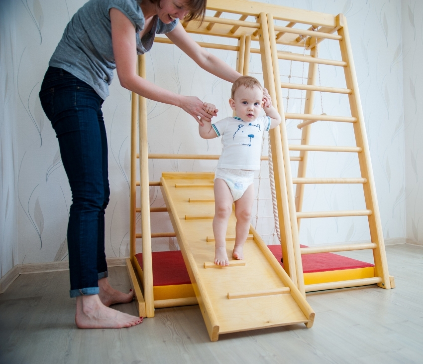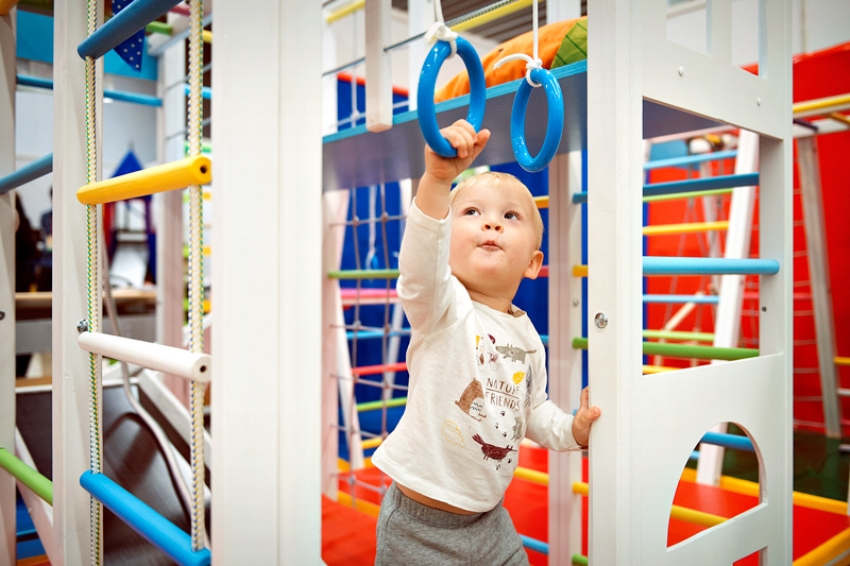 Занятия на детском спортивном уголке полезны ребенку уже с 6 месяцев