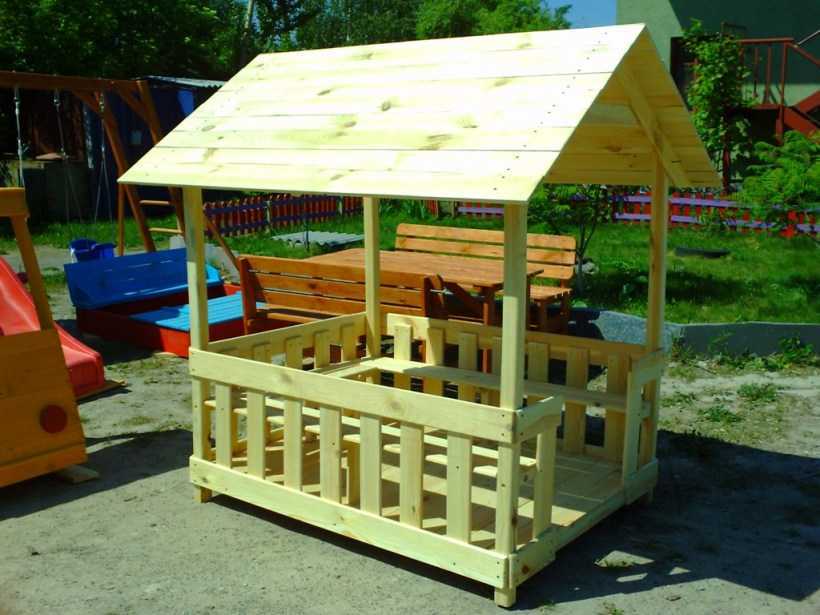 Огражденная и готовая к обустройству детская площадка из дерева своими руками, а также ее аналоги в первую очередь приветствует беседку. Эта конструкция бывает: