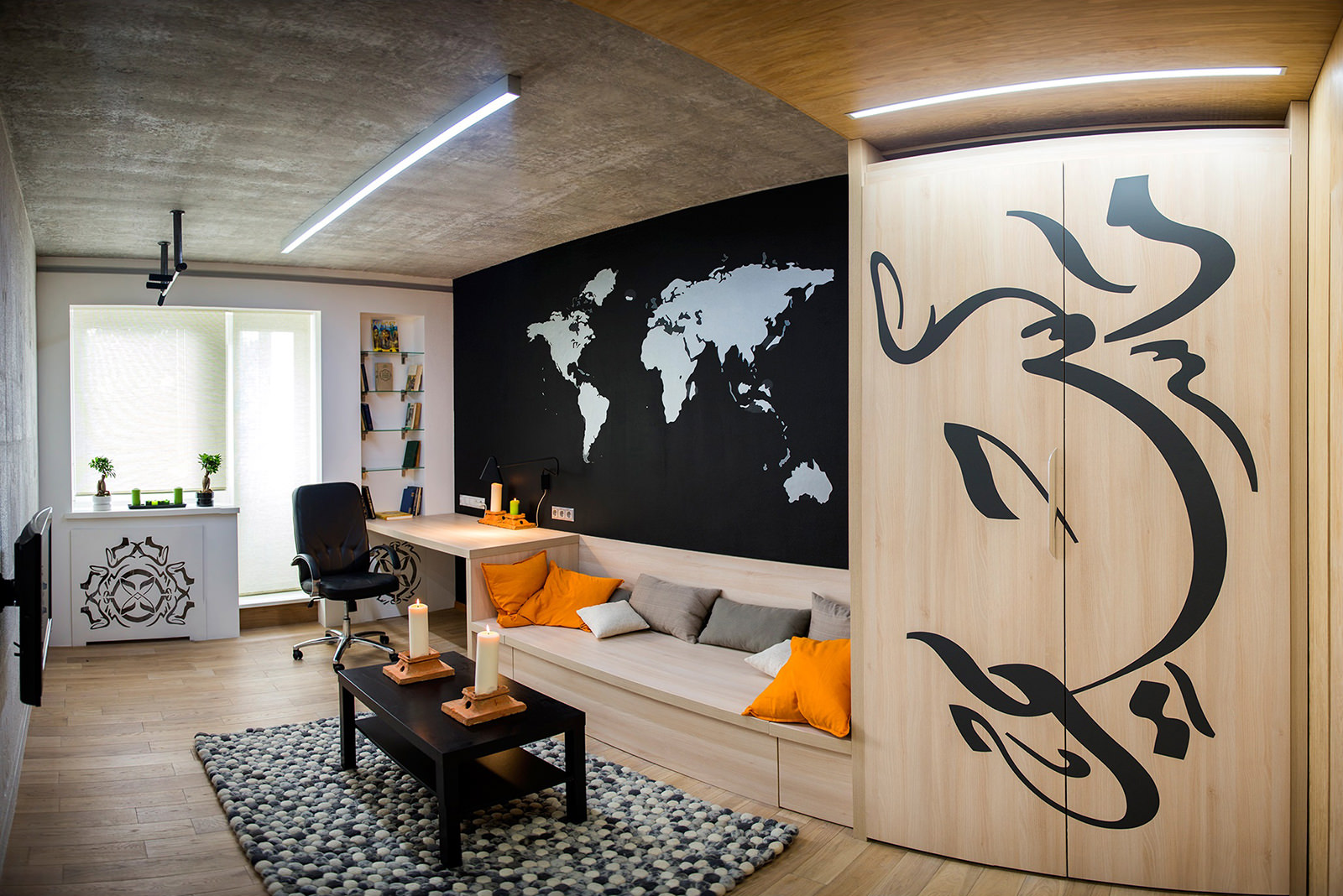 Учитывая характерный для подростков максимализм, в том числе во вкусе и предпочтениях, лучше комнату сделать альянсом невероятных цветов, фактур, форм и абстракций. Стили лофт, авангард, хай-тек, скандинавский и современный помогут в этом.