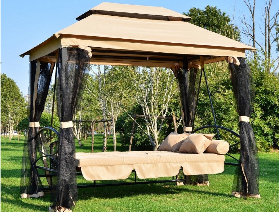 При выборе садовой модели учтите, для каких целей вы собираетесь использовать конструкцию. Выбирайте функциональные модели с нагрузкой от 150 кг и выше. Учитывайте, сколько человек необходимо поместить. Рекомендуется приобретать модели на 3-5 людей, оптимальная длина сиденья составляет от 170 до 200 см. От формы опоры конструкции зависит, насколько безопасными будут качели. Если основа будет устанавливаться на мягкую поверхность, ножки должны быть дугообразными