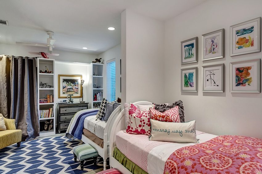 При выборе такой планировки важно заранее установить правила, чтобы избежать споров. Этот вариант не стоит рассматривать, если в возрасте девочек большая разница