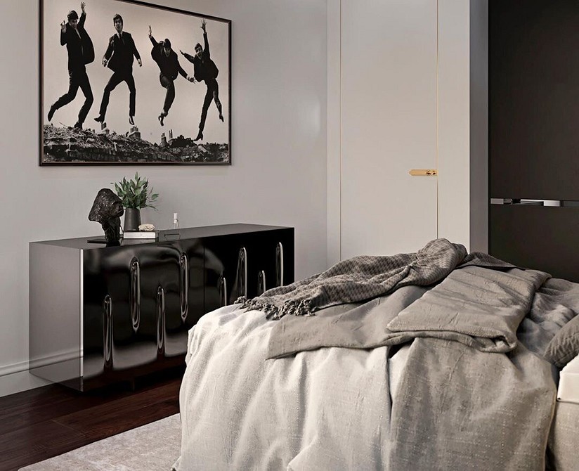 Цвета оформления могут быть любыми, однако предпочтение лучше отдать холодным оттенкам. Черно-белая палитра идеально подойдет для этого стиля. При этом ни на мебели, ни на текстиле не должно быть никаких рисунков.