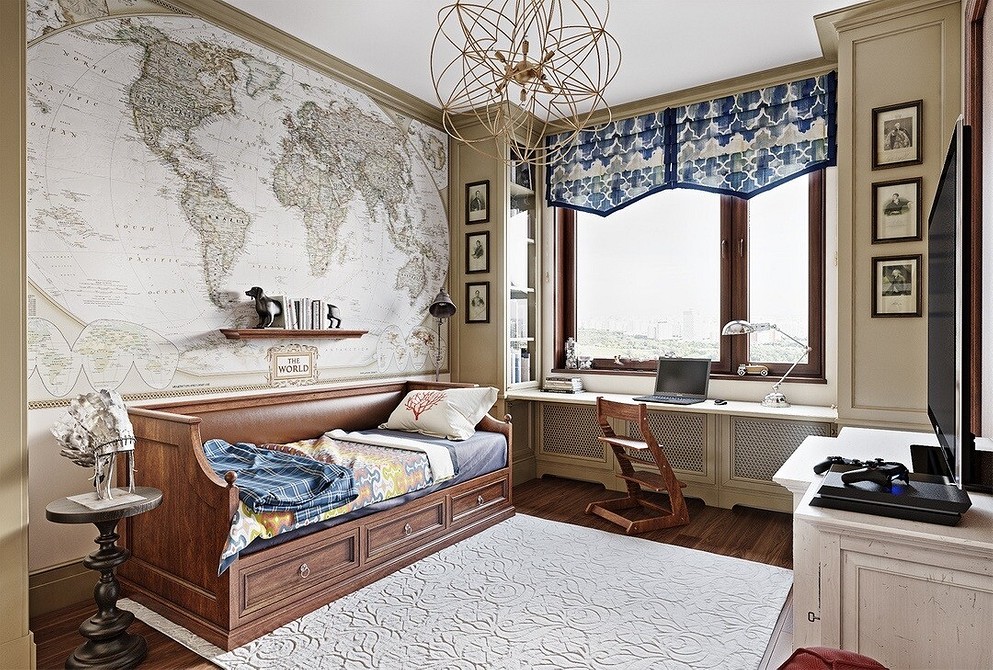 Комната для подростка является своеобразным отражением его мировоззрения, поэтому мальчик вносит свою лепту в оформление помещения – украшает стены постерами, расставляет на полках книги и коллекционные фигурки.