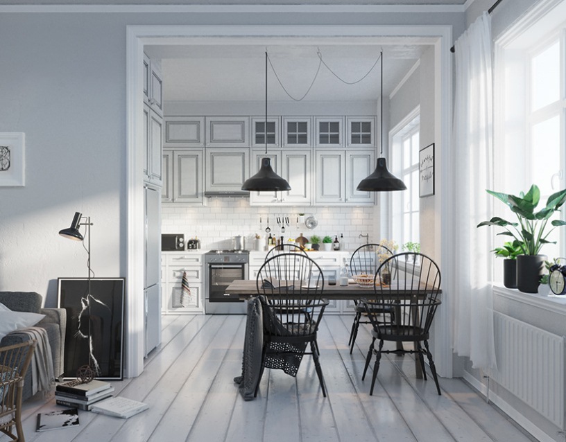 Стиль встречается в загородных домах и квартирах с небольшой площадью. Он удобен для повседневной жизни и не нуждается в сложных элементах.