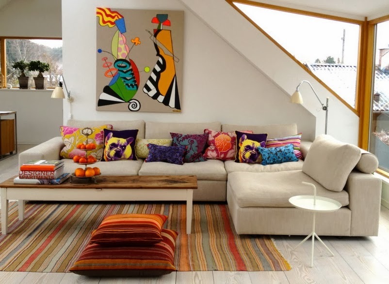 - Текстиль в такой комнате должен играть объединяющую роль. То есть портьеры, подушки для дивана и покрывало на кровать стоит выполнить если уж не из одной ткани, то в единой цветовой гамме.