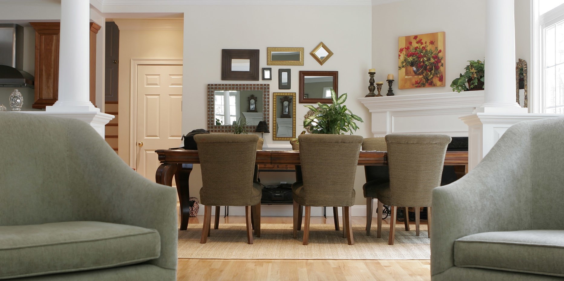 - В первую очередь необходимо сделать главными визуальными объектами картины на стенах, красивые вазы, посуду, свечи, изысканную мебель, но не бытовую технику;