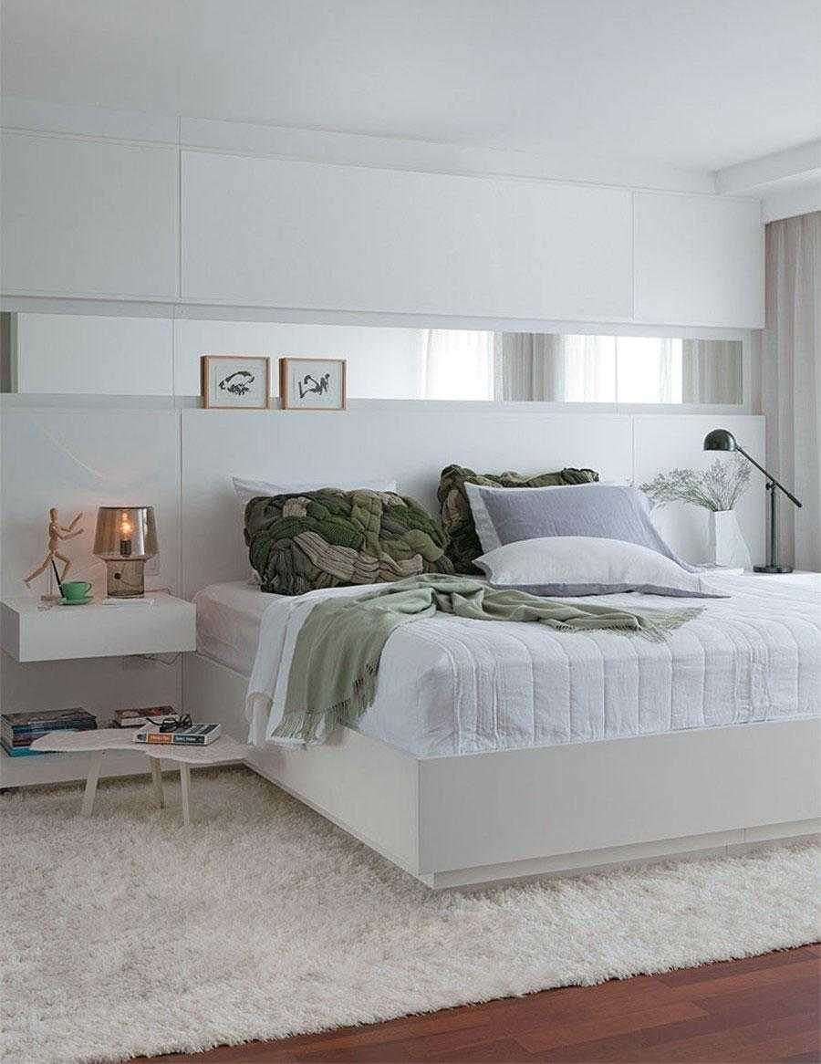 Чтобы сохранить функциональность, стену вдоль которой стоит кровать, можно использовать для стеллажей, полок, тумбочек, расположив их симметрично по обе стороны. А чтобы комнату визуально сделать больше, можно отделать ее зеркальными панелями или наклеить фотообои с изображением в перспективе.