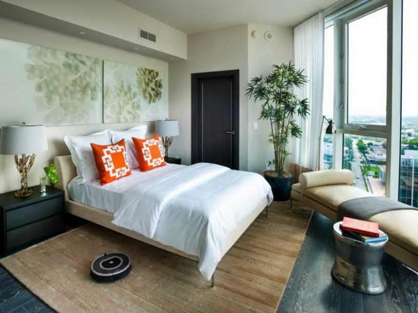 - если в спальне нужно расположить ещё и кабинет или зону под цветы, потому что в остальной квартире для них нет места.