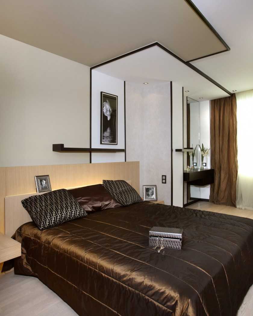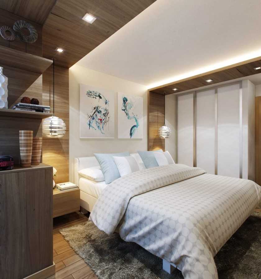 Ниже можно увидеть подборку разнообразных фото дизайнов спален в современных стилях 10 кв. м, 12 кв. м и других небольших площадей.