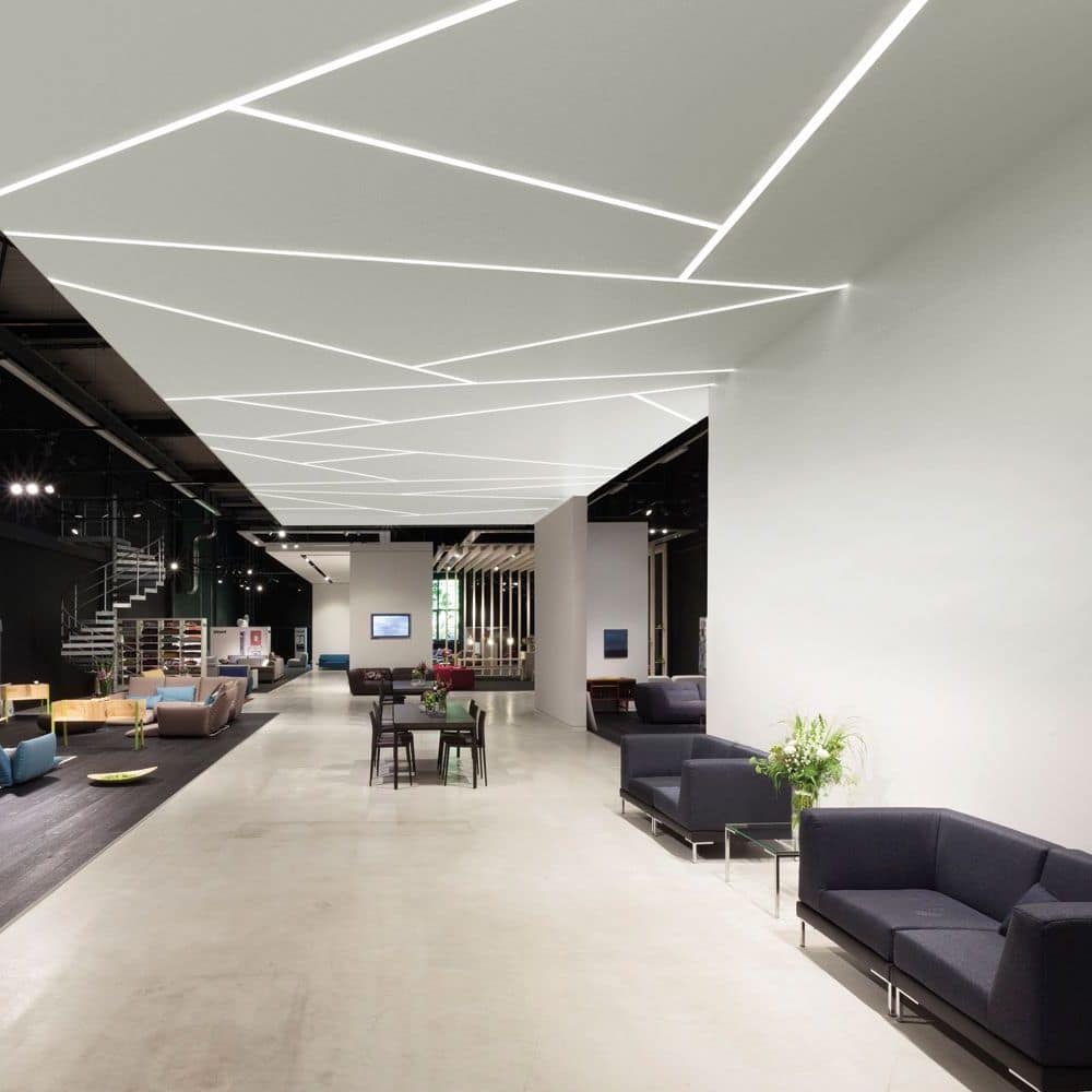 Основным и очень весомым преимуществом таких потолков является возможность оригинально и нестандартно оформить систему освещения в помещении. В частности, за подвесным потолком легко спрятать не только точечные светильники, но и светодиодные ленты.