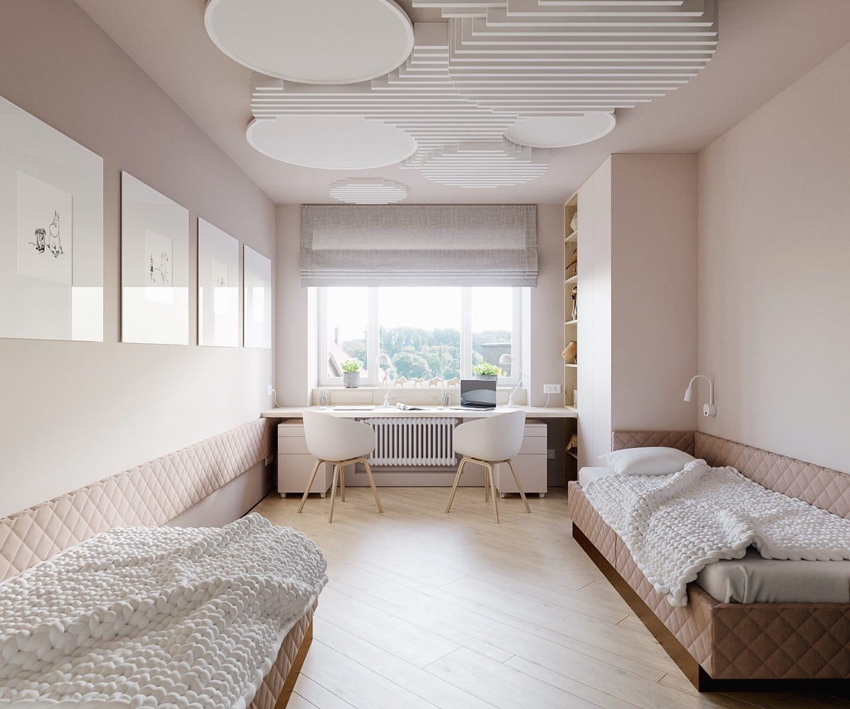 При таком решении настил должен быть достаточной высоты чтобы под него можно было спрятать кровать. Для такого решения идеально подходят длинные и узкие комнаты, которые еще называют вагончиками.