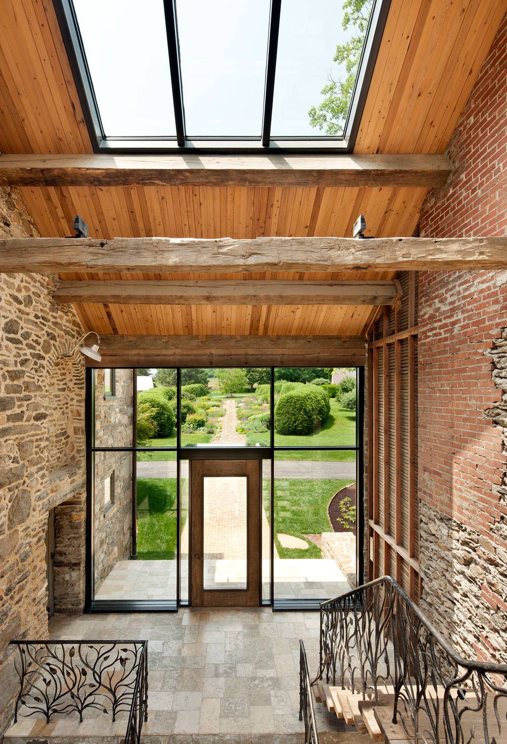 В частных строениях размеры и высота прихожих позволяют создавать интересные и запоминающиеся проекты