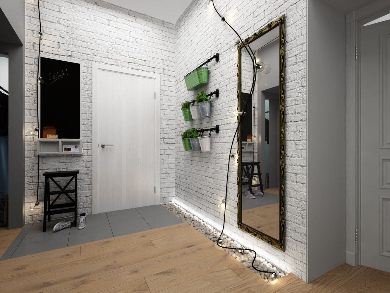 Можно повесить небольшое зеркало над комодом или консолью. В любом случае хоть небольшого размера, но оно должно висеть в прихожей комнате. При этом рекомендуется установить дополнительную подсветку.