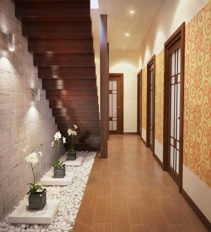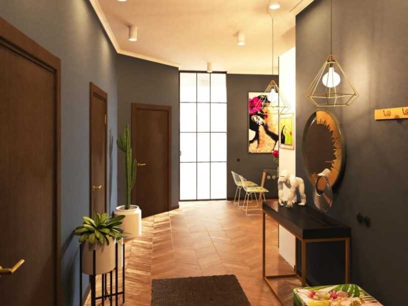 С дизайном необходимо определиться заранее. Выбирать стоит исходя из характеристик коридора. Все имеет значение, включая размер помещения, высоту потолка, форму. Тогда можно будет найти наиболее подходящий вариант, который скроет недостатки коридора и сделает акцент на достоинствах. Количество разных стилистических направлений велико, что позволяет рассматривать разные возможности.
