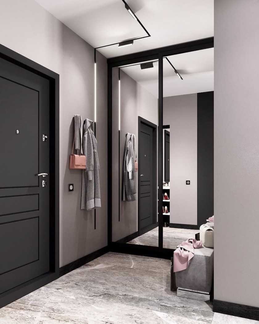 Чем зеркал больше и чем они больше, тем лучше. Шкаф-купе с зеркальными дверцами и зеркальное панно на стене — хорошие варианты для расширения тесной входной зоны, и уместные — с точки зрения функциональности помещения.