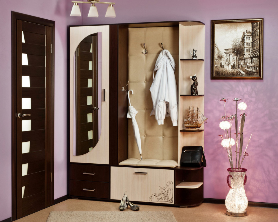Функциональное предназначение также очень важно. Оно подразумевает под собой наличие нескольких мест: стойка с крючками для курток, зеркало, тумбу, нишу для обуви, ящик с местом для различных мелочей