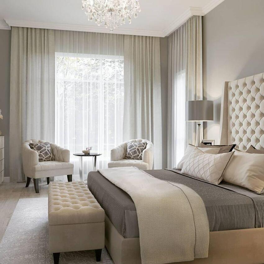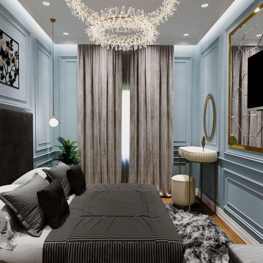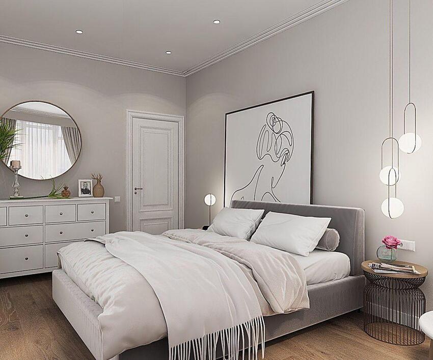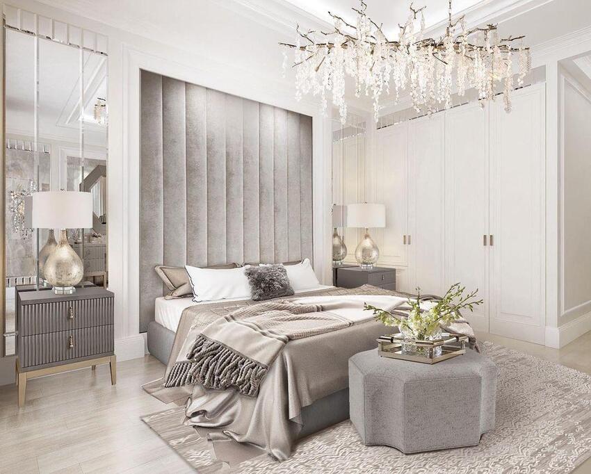 Если владельцы спальни тяготеют к классическому стилю, но хотят чтобы их комната выглядела современно и свежо — неоклассика будет оптимальным выбором.