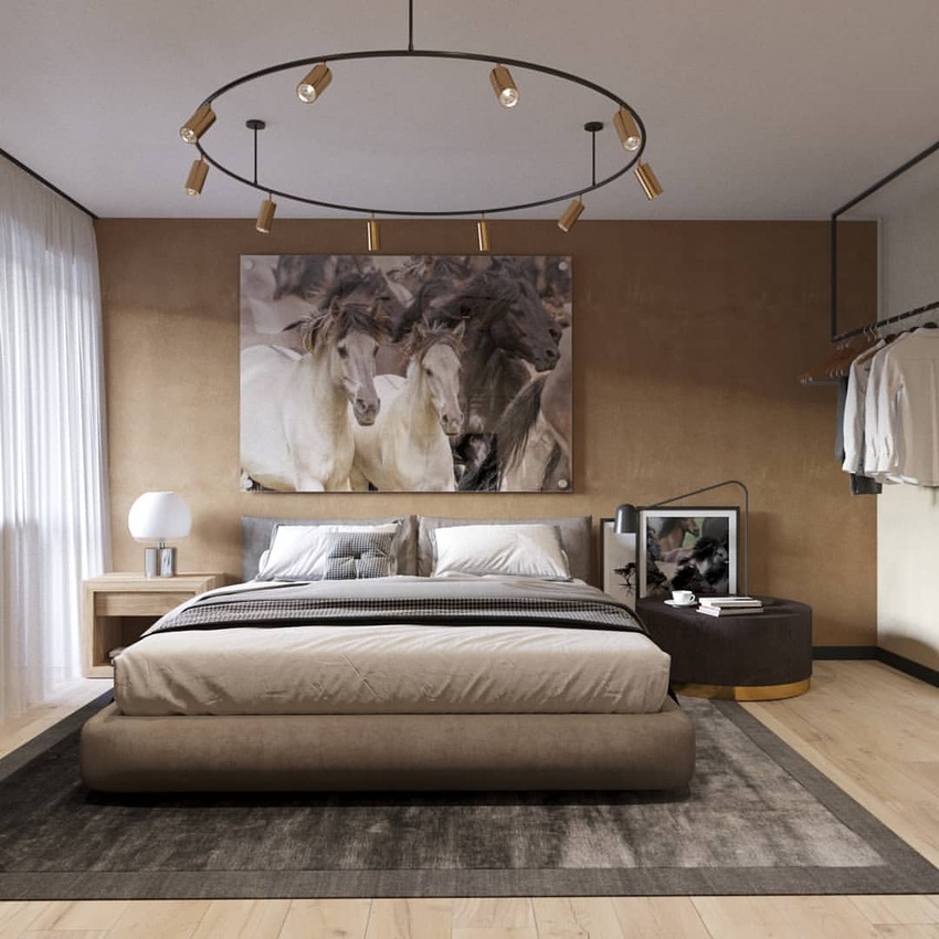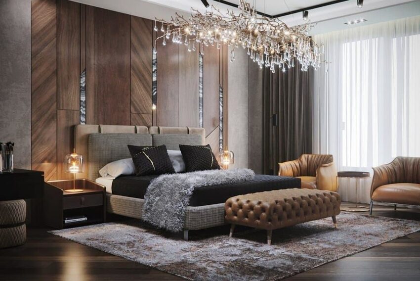 Экстравагантная мебель или освещение придаст спальне своеобразный шик, а современные произведения искусства – самобытности.