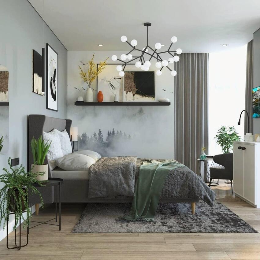 Добавьте в комнату ярких акцентов — колоритное покрывало, оригинальный декор или стильное панно на стене отлично разбавят монотонный интерьер и придадут ему индивидуальности.