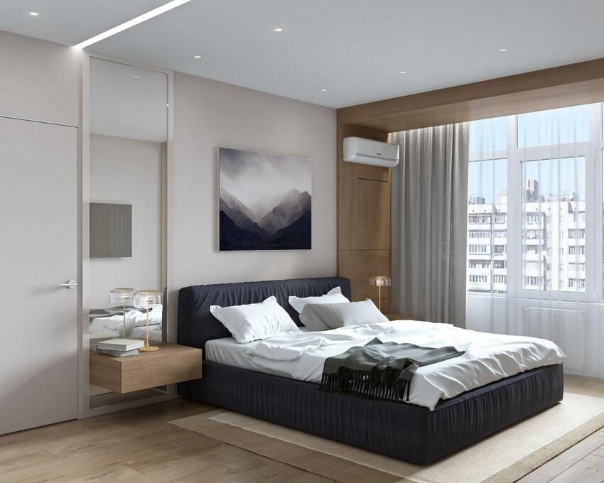 Чтобы интерьер не казался скучным и однообразным, дизайн спальни создают в виде уютного минимализма, когда гармонично сочетаются простор и свобода от лишних вещей с практичностью и функциональностью обстановки.
