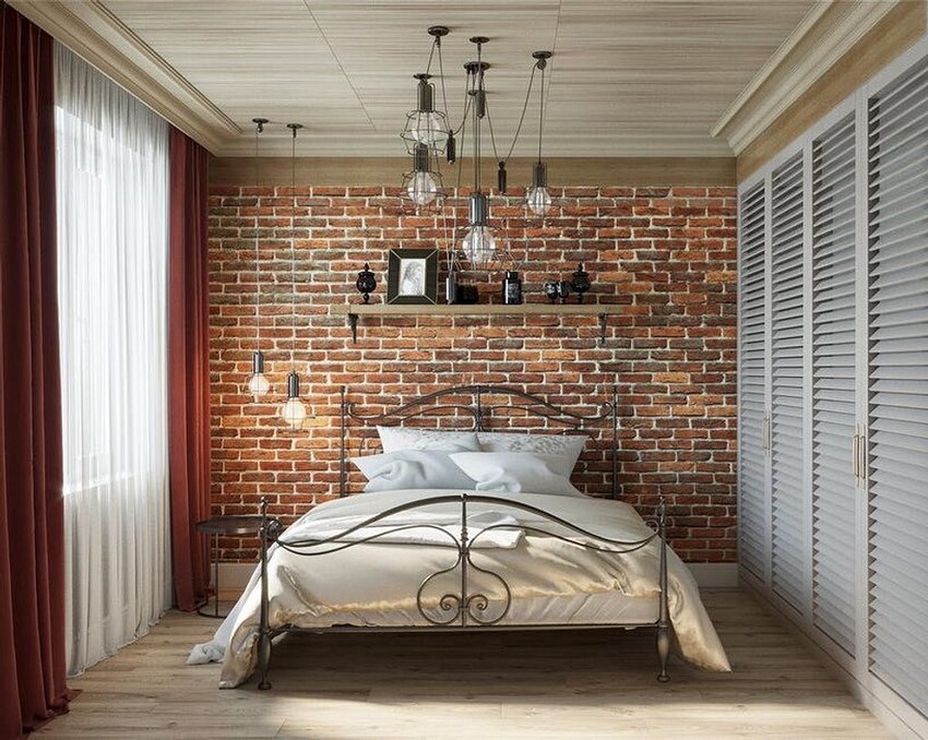 Необязательно делать интерьер лофта в чистом виде. Вполне достаточно применить некоторые элементы, сделав дизайн спальни, с одной стороны, нетипичным и оригинальным, а с другой — уютным и функциональным.