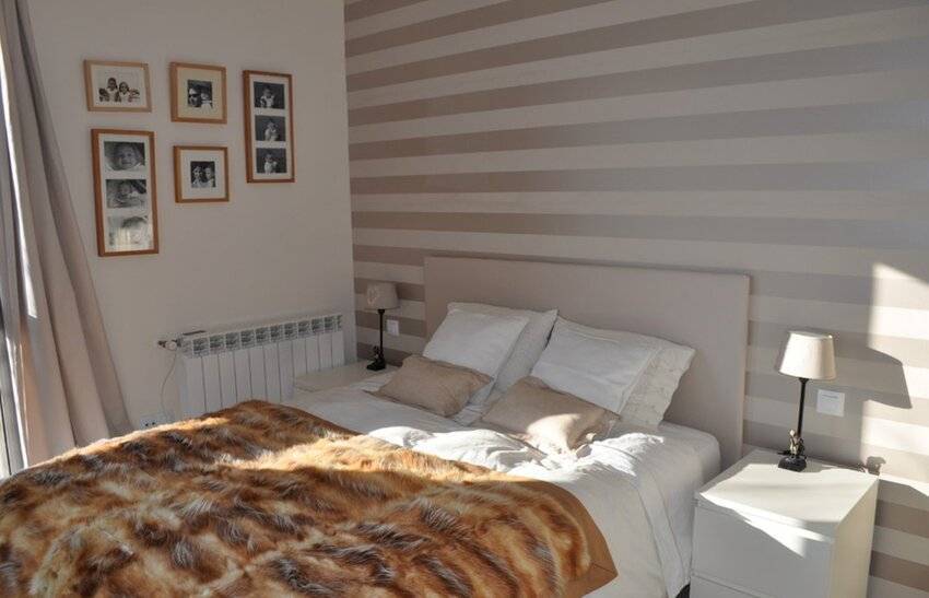 - Гармонично увеличат длину стен обои с горизонтальными линиями разной толщины, либо горизонтальные не крупные узоры. Слишком мелкие изображения для покрытия не нужно выбирать, отдайте предпочтение средней величине.