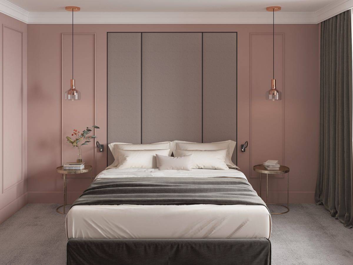 В спальне можно использовать комбинацию разных цветов и фактур при отделке стен. Допустимо использовать один тон или фактуру для формирования акцентной стены, например, у изголовья кровати, в то время как остальные стены могут быть оформлены в других тонах.