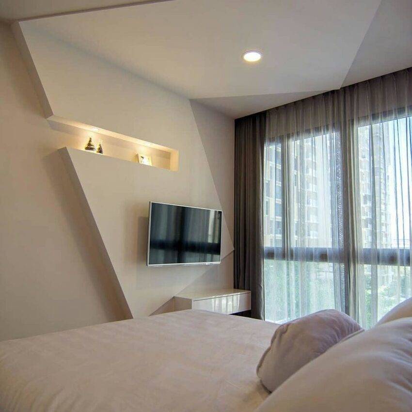 - Кровать по возможности, нужно приобрести на декоративных ножках, чтобы оставить свободным пространство над полом, тем самым облегчив общее восприятие.