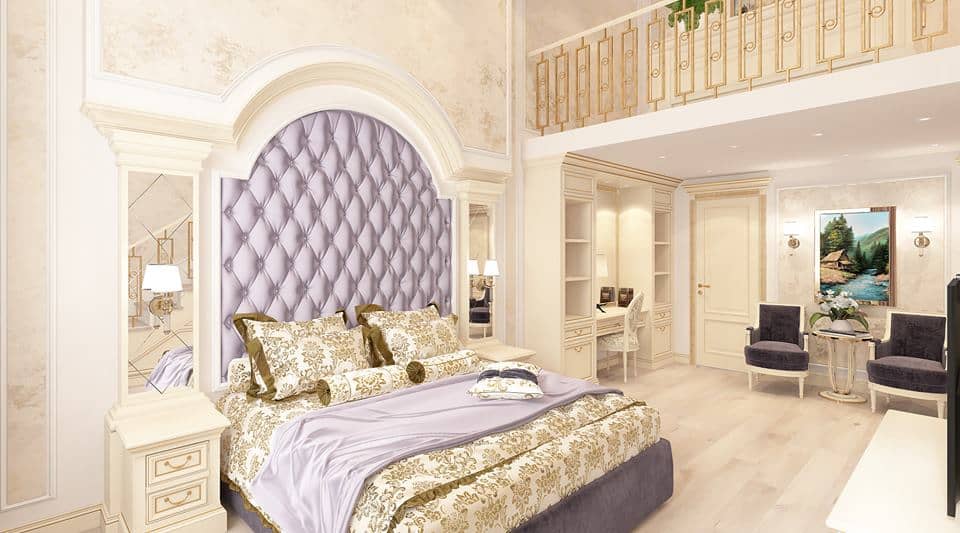 В подобных вариантах оформления принято воплощать в реальность тот комфорт с роскошью, которые были использованы в почевальнях императоров. В таком помещении основным акцентом будет кровать, в которой обязательно должно быть высокое изголовье. Скорее, это не просто кровать, а настоящее ложе, в котором Вас будет ожидать праздный отдых с негой. Если Вы предпочитаете варианты богатых отделок, занавески с рюшиками в большом количестве, много подушек, а также спальное ложе с высоким изголовьем, классика – именно, что Вам нужно. Это просто идеальное решение!