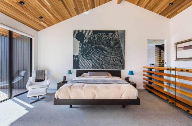 В больших помещениях можно удобно зонировать пространство с помощью особенностей освещения и потолочного покрытия. Кроме того, в современных домах, особенно частного сектора, спальня часто имеет в своем распоряжении небольшую ванную комнату, это очень удобно и практично.