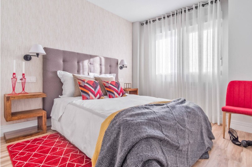 Приветствуется натуральный текстиль для спальни, который дышит, пропуская свет и воздух, создает приятную природную атмосферу.