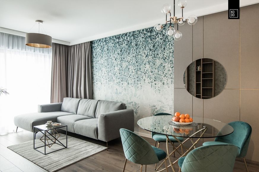 Если стены гостиной комнаты не будут однотонными, то нужно четко определиться с набором цветов еще на стадии проекта. Подобрать оттенки, выбрать главный и дополнительные, продумать акцент и помнить, что все должно сочетаться.
