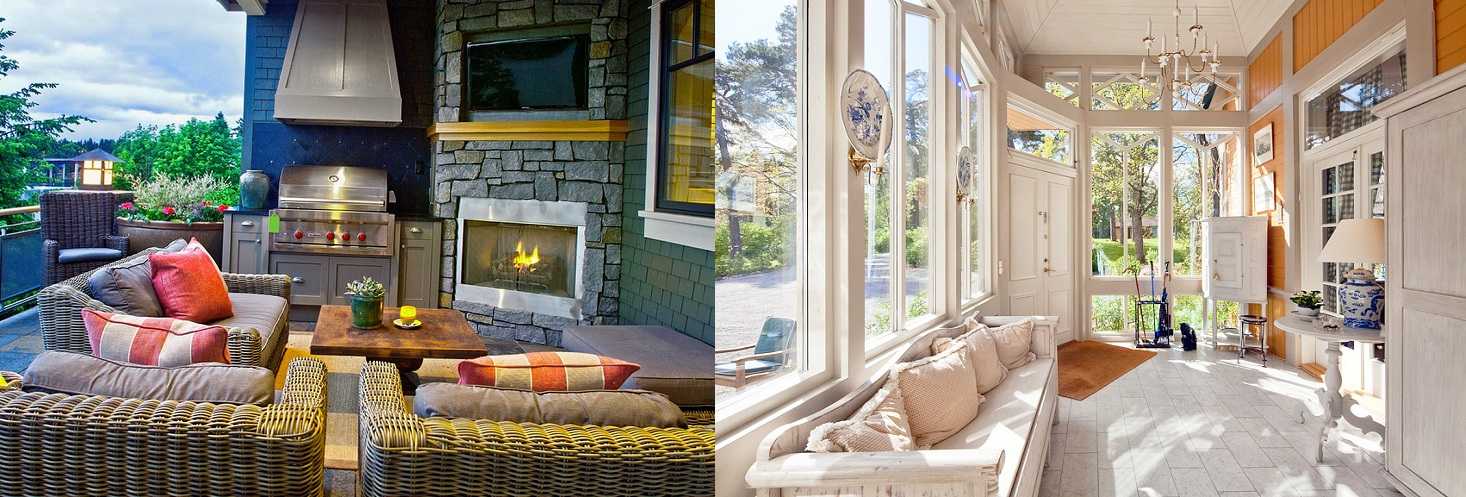 Если дизайн веранды продуман грамотно, то она сможет превратиться в практичную комнату для проживания, а самое главное – для отдыха. Большие окна и раздвижные двери смогут максимально приблизить людей к природе, которые находятся в этом помещении. Можно соорудить камин, поставить удобную мебель.