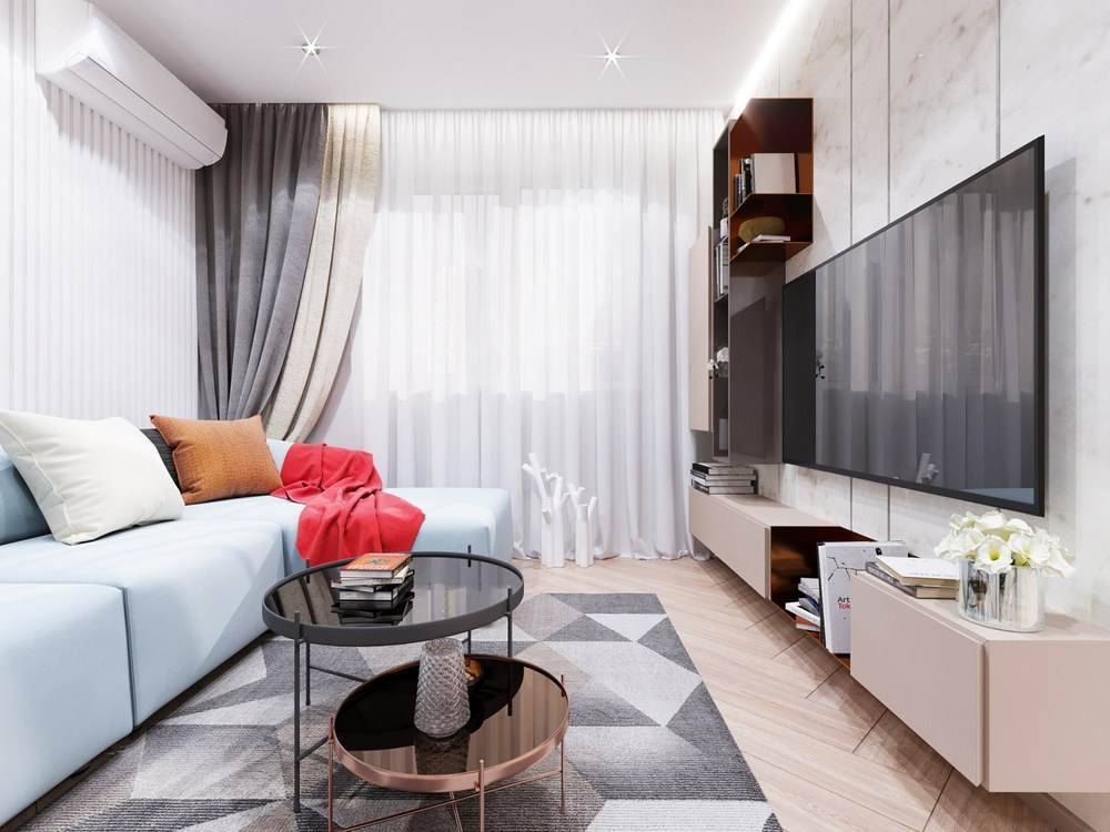 В маленькой комнате потолок выполняет 2 основные функции: зрительно увеличивает высоту и зонирует гостиную. Для этого используются 3 основных инструмента.