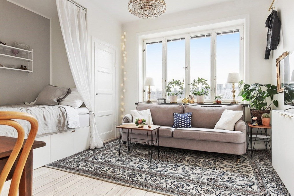 На выбор того или иного варианта дизайна гостиной, совмещённой со спальней, влияют такие факторы, как площадь, высота, наличие лоджии, а также ваш личный вкус и количество доступных средств. Разместить полноценную спальню и гостевую зону на площади 18 кв. метров сложно, но вполне реально.