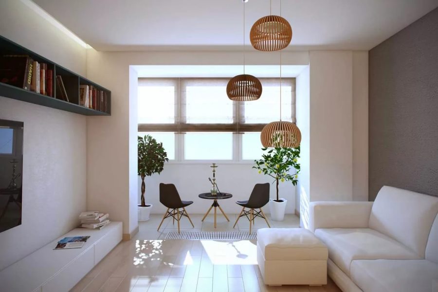 Хорошим вариантом увеличения свободного пространства является совмещение комнаты с балконом. В таком случае, балкон стоит тщательно утеплить, убрать балконный блок и сделать его единым продолжением комнаты.