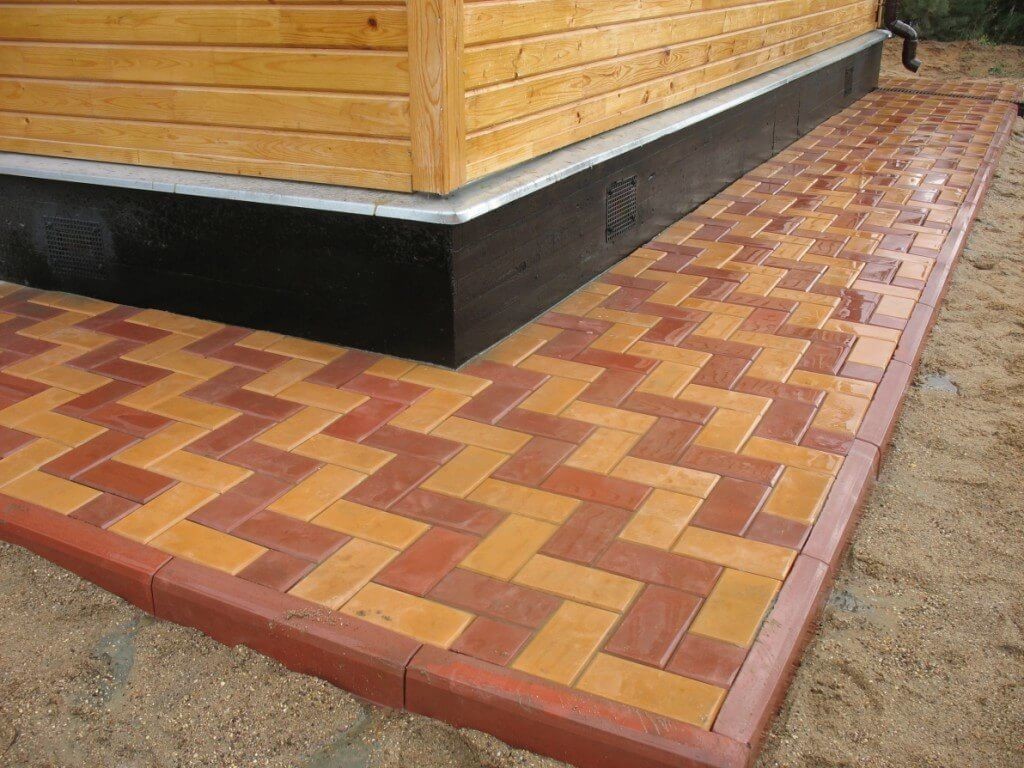 Отмостка из тротуарной плиткиОтмостка из брусчатки