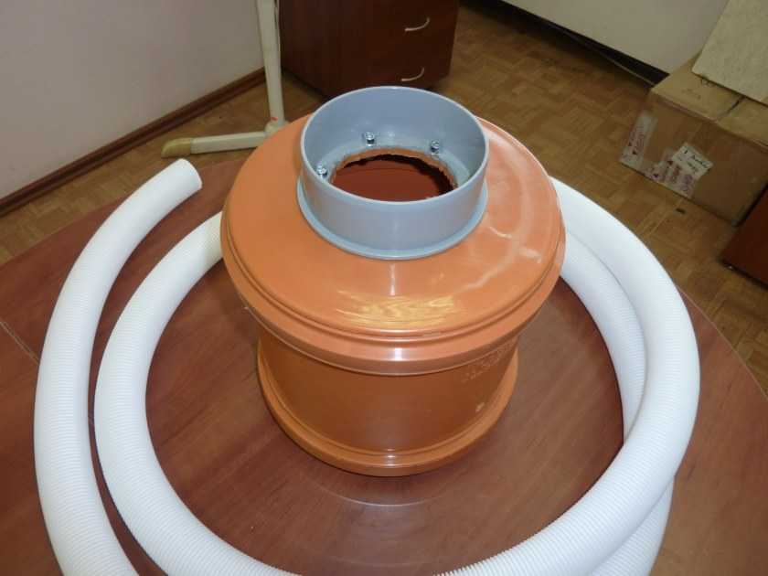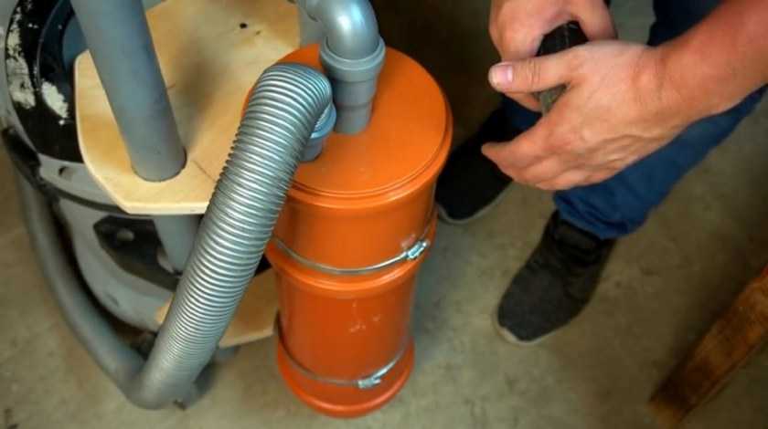 Сделать это очень просто. На входе в циклон необходимо будет установить кусок канализационной трубы диаметром 40 мм, а на выходе — всасывающее отверстие должно быть большего диаметра. В данном случае можно использовать пластиковую бутылку объемом 2,5 литра (ее диаметр составляет 110 мм).