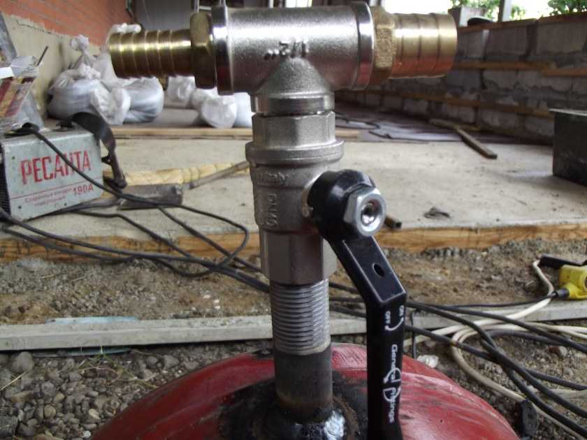 Далее строго напротив нужно приварить специальный штуцер, который необходим для подключения компрессора. Следует расположить этот штуцер таким образом, чтобы его центр точно совпал с центром приваренной ранее трубы сечением 3/4 дюйма.