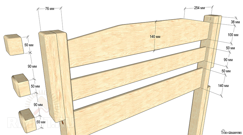 Бортики, оставшиеся на раме, позволят еще более усовершенствовать кровать, существенно не усложняя ее. Как именно – см. общий вид, размеры и чертежи на рис.: