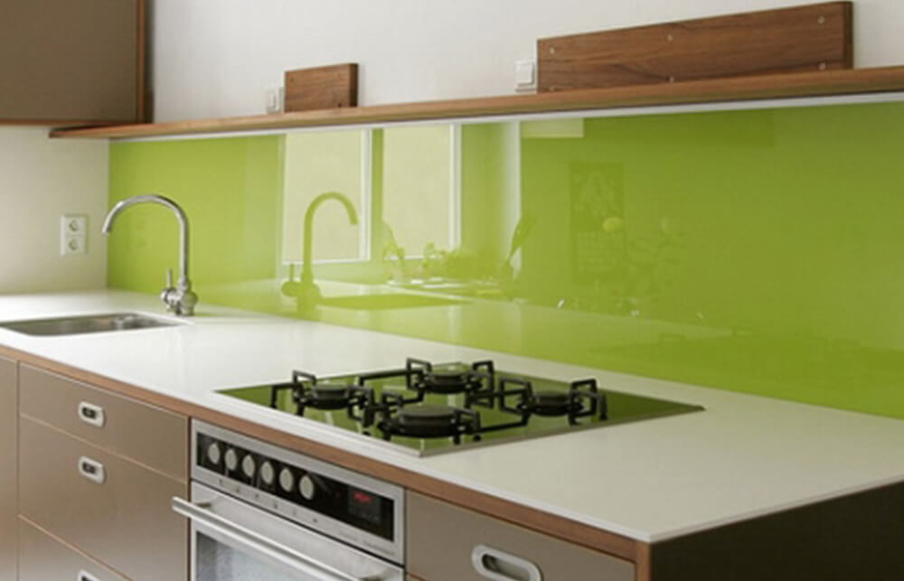 При желании, защитить можно не только зону над столешницей и плитой, но и область за вытяжкой.