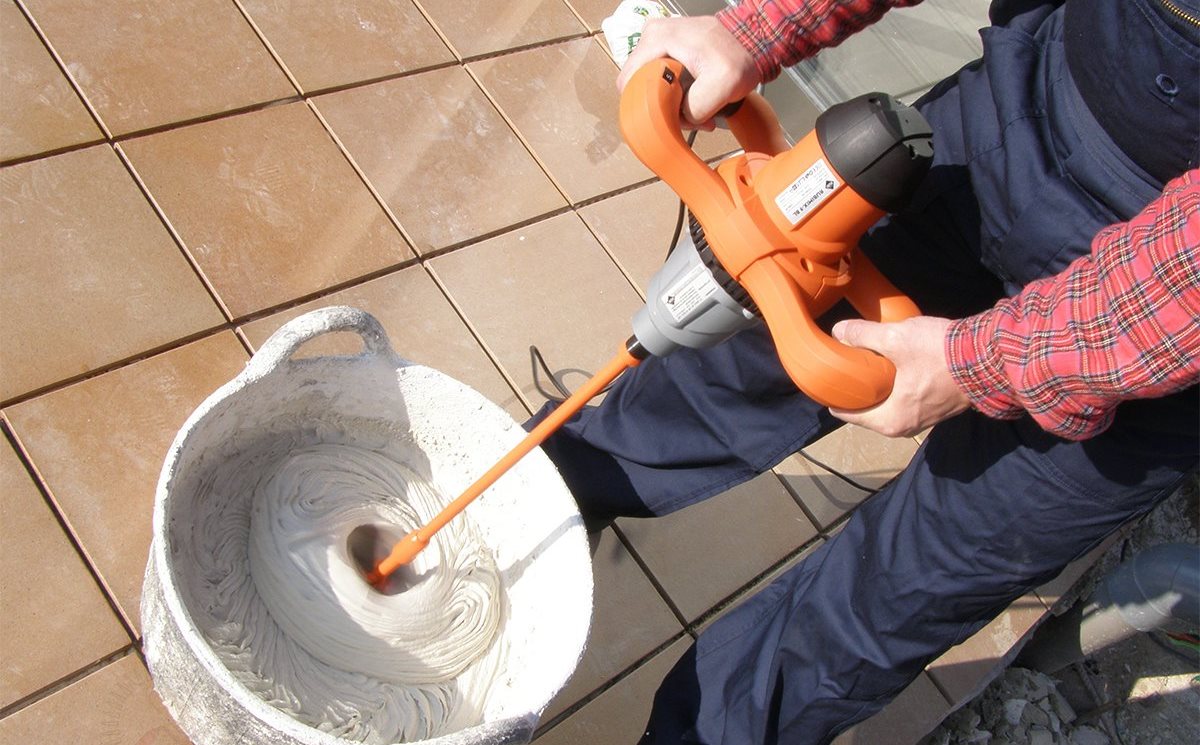 Для размешивания требуется подходящая емкость и строительный миксер.