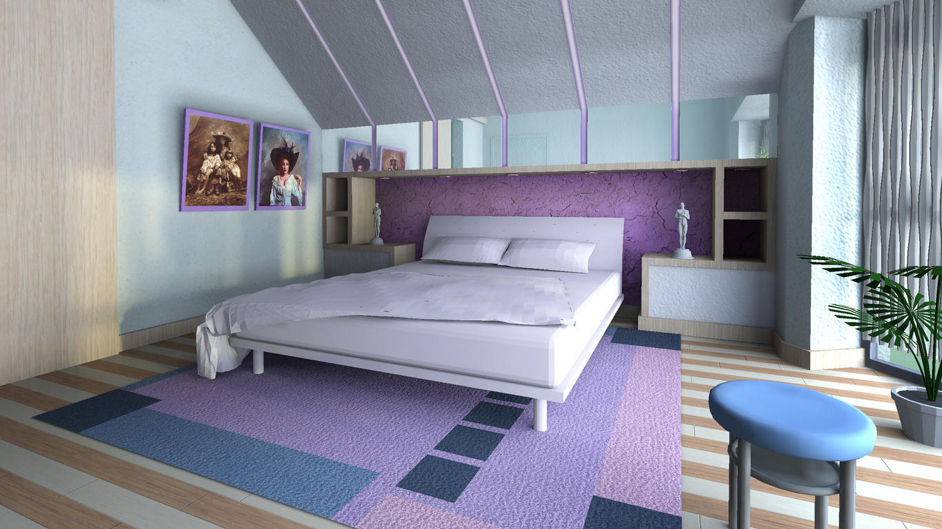 В том случае, если это цвет с преобладанием синего, мы можем говорить, что натура, предпочитающая его – это властный и авторитарный человек. Если преобладает красный – импульсивный и занимающий активную жизненную позицию. Человек, который хочет использовать фиолетовый цвет в интерьере спальни может быть охарактеризован, как чувственный и самобытный, все его действия подвергаются оценки с точки зрения интуиции и чувств.