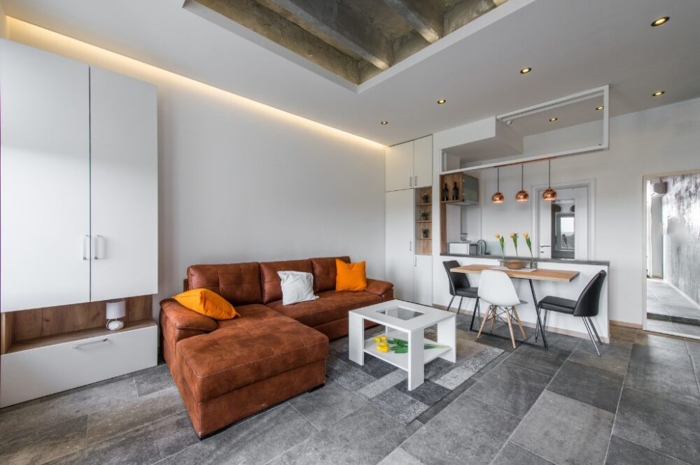 Если выбран темный тон стен, нужно осветлить комнату, используя: