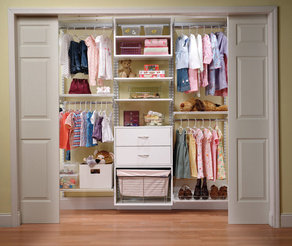 Желательно, что дверцы легко открывались. Наполнение для шкафов бывает разным, однако в них всегда есть дополнительные отделы для разных вещей. Чтобы гардеробная была более функциональной, закрепляют крючки, антресоли, вешают перекладину. Поэтому детям будет, куда положить портфели и сумки, органайзеры с носками, майками.