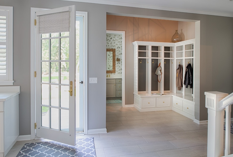 В остальных случаях возможности комплектации сильно расширяются за счет дополнительного свободного пространства сразу за дверями. Если позволяет метраж помещения, такой предмет мебели может стать мини-гардеробной, в которую можно войти и свободно достать все необходимое. В нее ставят напольные вешалки, даже оборудуют трюмо с маленьким пуфиком.